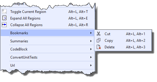 Choose Delete to delete all lines of text in the current code editor window containing a bookmark.