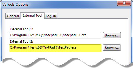 Choose External Tool 2 to run the external application defined using the Options dialog shown by clicking the Options... menu-item :
