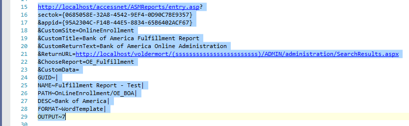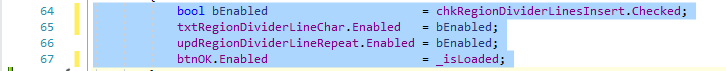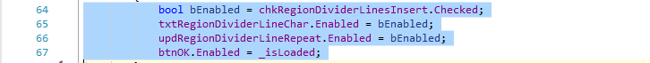 The following shows the cut or copied text corresponding to the bookmarked lines from the code editor window after being pasted into another text field: