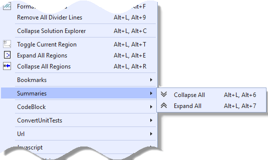 Choose Collapse All to collapse all summaries in the current code editor window.